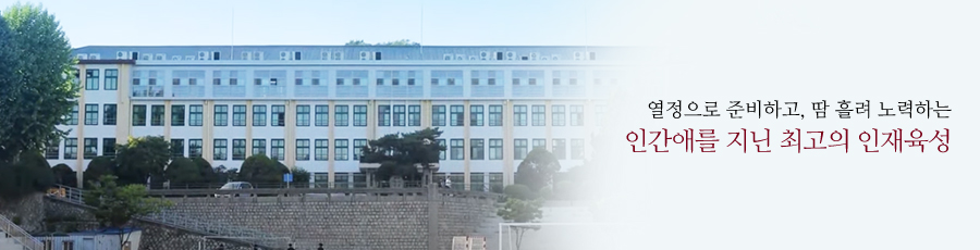또한 학생들이 자랑스러워하고 언제나 머무르고 싶어 하는 학교, 학생들의 꿈을 실현시켜 주고 실력을 키워 주는 학교, 지역사회와 학부모의 신뢰를 바탕으로 공교육의 내실화를 선도하는 학교를 만들기 위해 노력하고 있습니다. 아울러 본교는 행복한 세상을 만들어 가는 따뜻함을 지닌 인성과 전문 분야에 대한 심화된 지식과 실력을 겸비한 미래 한국의 지도자로서 세계화 시대를 선도할 인재를 양성하기 위해 노력하고 있습니다.